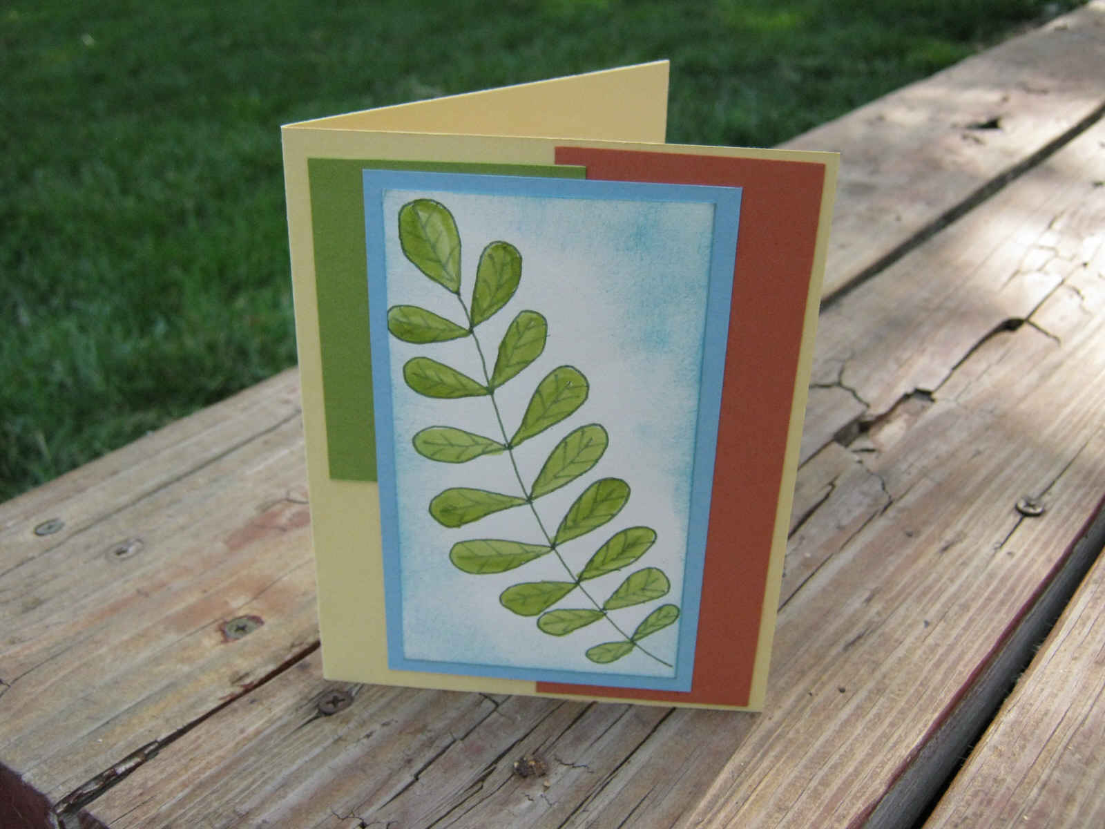 Today, Grace made a fish pond game (with a little bit of help) and I made a card. The sketch on the front of the card was inspired by some beautiful leaves I saw on my walk home from school today.