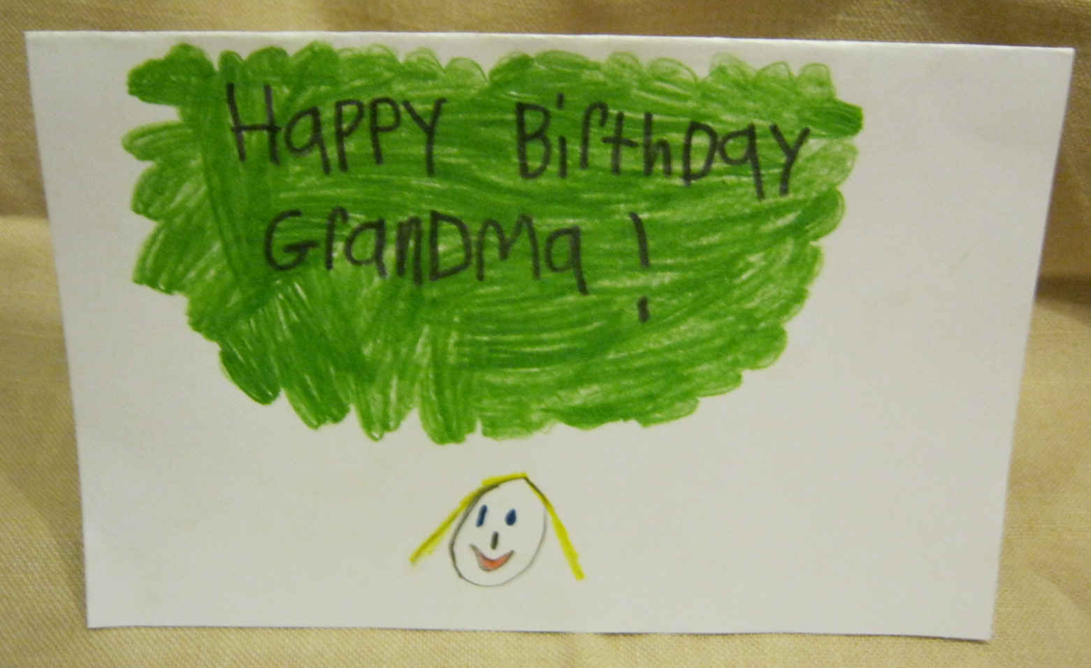 My mother-in-law’s birthday is coming up, so Grace and I each made a card today. The insides are cute too, but on the off chance that Grandma sees this post before she gets the cards, I wanted to leave a bit of mystery. (I know the suspense is overwhelming.)