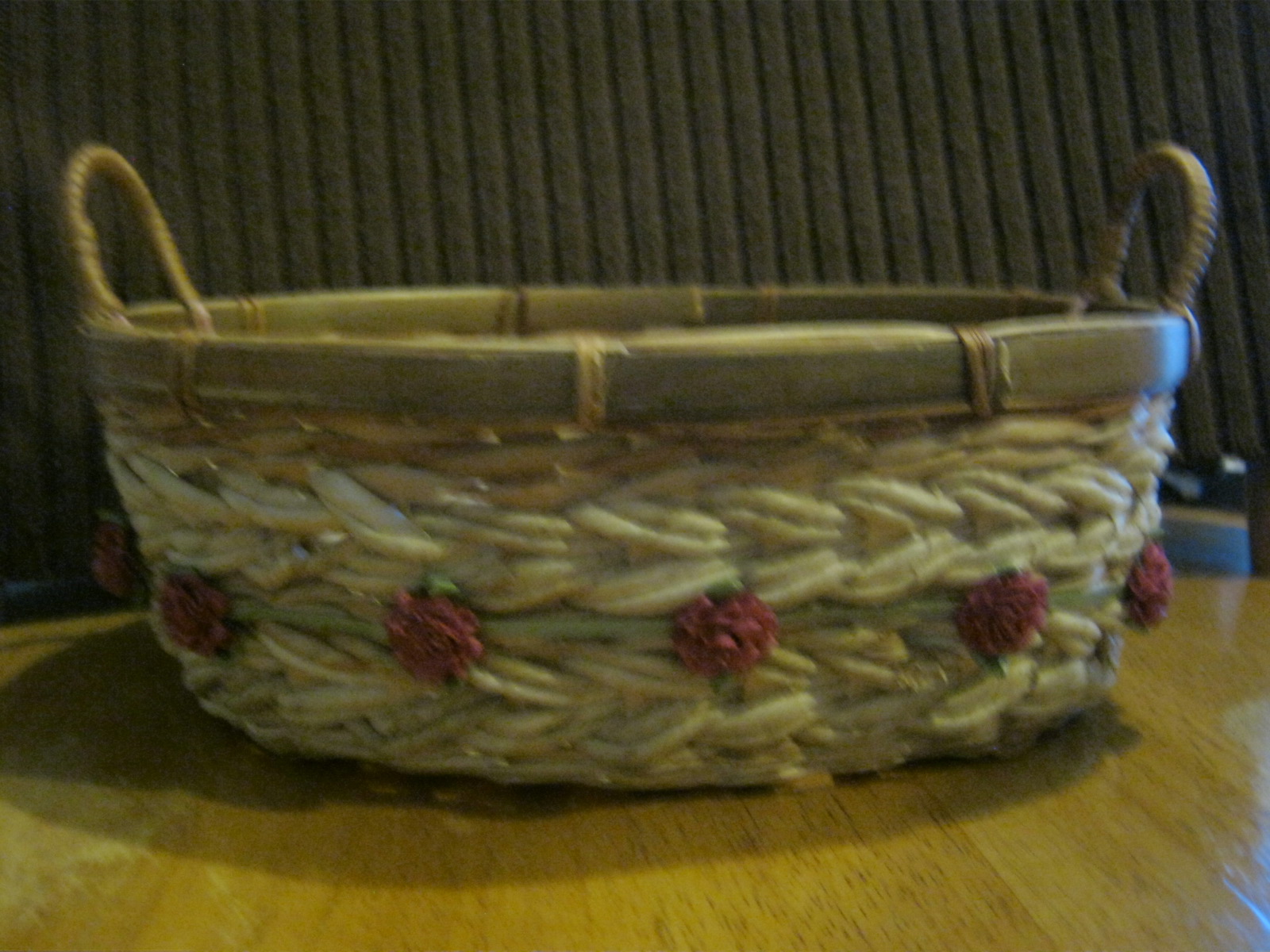 I have had some baskets in my kitchen for awhile now. They are the perfect shape and size for my shelves, but the little roses around the sides aren’t quite my style.