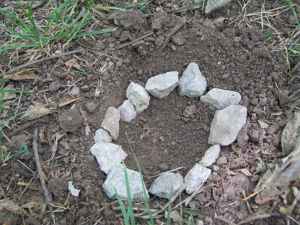 First, we made six rock circles (about 5″ in diameter) several feet apart from each other.