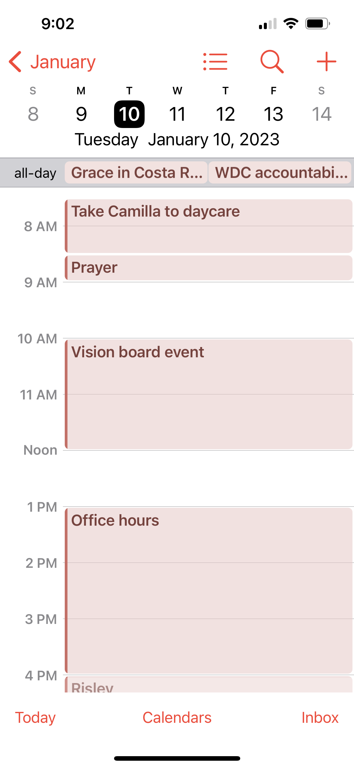 Maybe you have a scripture, prayer phrase, song, or even a physical gesture that you want to engage at the beginning of your day. I expect it’s actually a pretty bad habit for me to have my phone right by my bed at night, so you might prefer to pray through your calendar while you have breakfast or at another quiet moment in the morning.
