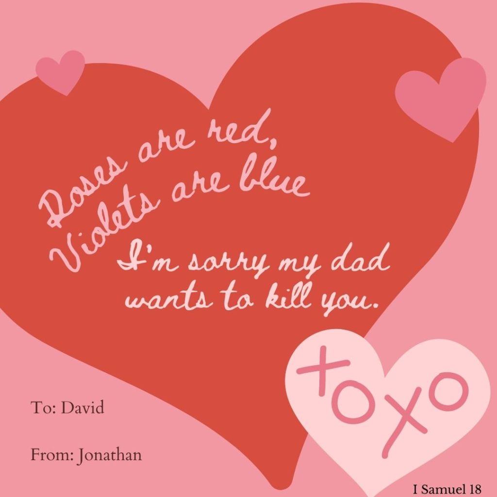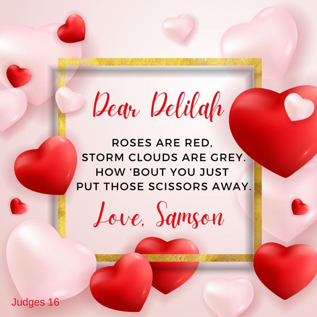 Just for fun, here are a few Valentine cards that might have been from Biblical characters.
